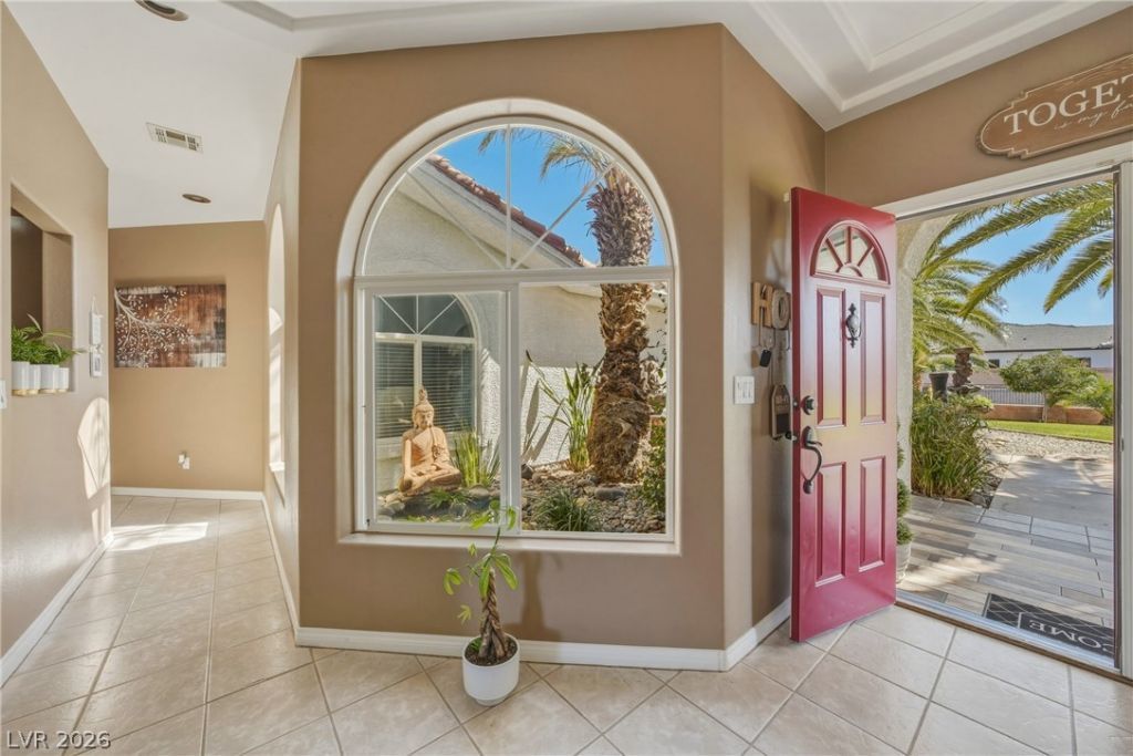 Rare Las Vegas estate on .54 acres with NO HOA and horses allowed! This custom 5 bedroom, 3.5 bath home features a split floor plan, spacious kitchen with stainless steel appliances, and Jack-and-Jill baths. The primary suite offers a recently tiled walk-in shower, jacuzzi tub, and large walk in closet. Property highlights include a 400-amp electrical panel, whole home swamp cooler, community well with private septic, and option to connect to public utilities at the street. Oversized 2 car garage with side access to detached storage shed. Enjoy real grass, koi pond, covered patio, garden area, RV parking, and room for a custom pool if desired. Newly painted exterior and electric gate. Built-in fish tank with fish sharks adds a unique touch. Space, freedom, and endless possibilities ? all minutes from city conveniences.